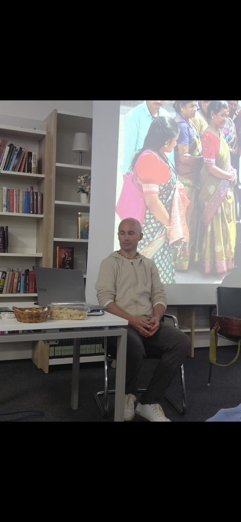 Gost večera, Andrej Pešec, je s pripovedovanjem in fotografijami predstavil svoje doživljanje magične Indije ter obiskovalce popeljal skozi edinstvene kraje, kot so Mayapur, Jagganath, Puri, Južna Indija in Vrindavan.